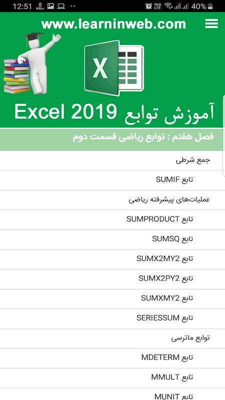 آموزش توابع اکسل 2019 به فارسی APK معلومات