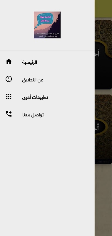 اخلاق کے بارے میں نبوی احادیث کا اطلاق آپ کو انٹرنیٹ کنکشن کی ضرورت کے بغیر لکھی گئی مختصر اور لمبی حدیثوں کا ایک گروپ فراہم کرتا ہے۔