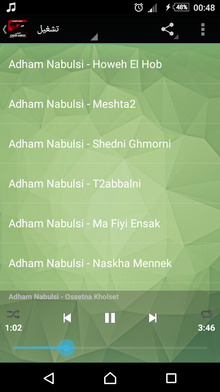 هدا التطبيق يحتوي على جميع أغاني الفنان أدهم نابلسي كما يعمل بدون أنترنيت