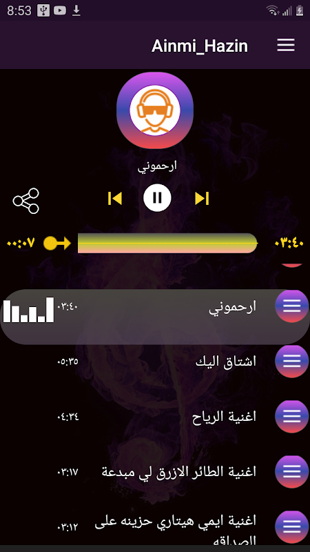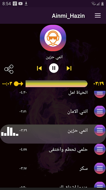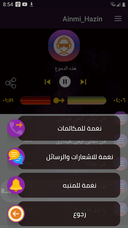 قائمة الاغاني الموجودة :-