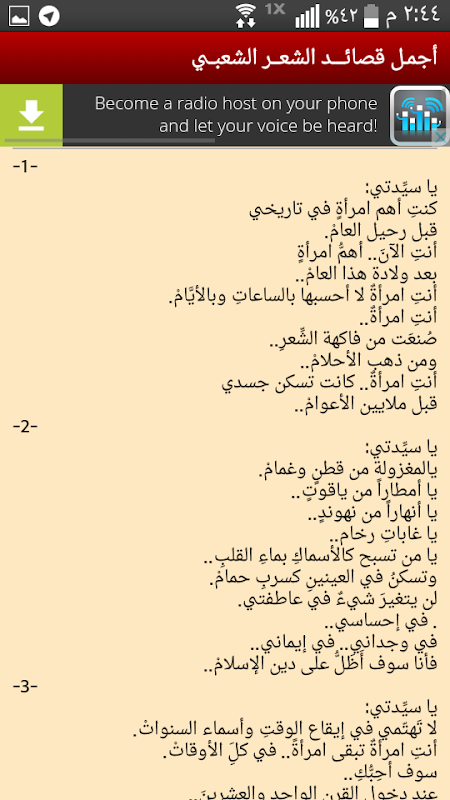 *محدث باستمرار (سنعمل على تحديث التطبيق باجمل قصائد الشعر الشعبي العربي ومستجدات الساحة الادبية في اللغة العربية )