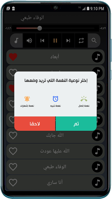 بإمكانك تعيين اي اغنية كنغمة رنين او نغمة إشعار ونغمة رسالة