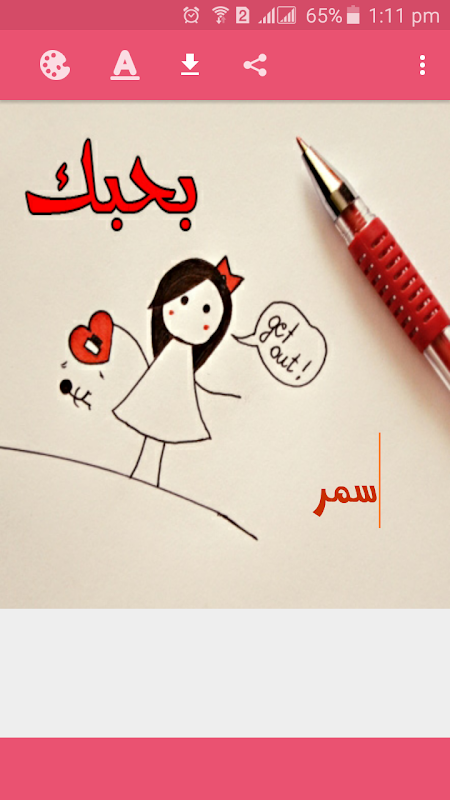 التطبيق يمكنك من كتابه اسم حبيبتك على صوره.