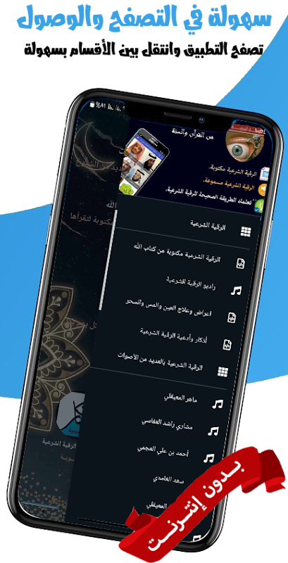 جادو، نظر بد اور حسد کے علاج کے لیے نیٹ کے بغیر مکمل شرعی رقیہ۔ جامع شرعی رقیہ کے لیے اب سب سے بڑی اور سب سے بڑی ایپلی کیشن ڈاؤن لوڈ کریں، mp3 آڈیو، بغیر نیٹ کے۔ مکمل شرعی رقیہ بہت سے، بہت سے تلاوت کرنے والوں کی آوازوں کے ساتھ، تازہ ترین آوازیں، اور تمام آڈیوز نیٹ کے بغیر کام کرتے ہیں۔ آپ کو بس ایپلی کیشن ڈاؤن لوڈ کرنا ہے اور اسے چلانا ہے۔