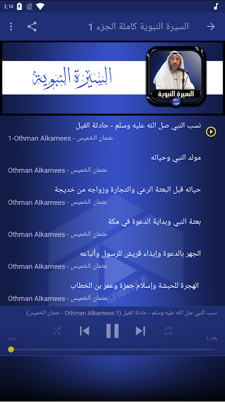 اب آپ آسانی کے ساتھ اس ایپلی کیشن کا استعمال کرسکتے ہیں اور شیخ عثمان الخمیس کی آواز کے ساتھ نبیography کی سیرت کو سن سکتے ہیں اور ایمان کی ایک عمدہ کیفیت کی زندگی گزار سکتے ہیں جس میں آپ شیخ عثمان الخمیس کی آواز سے لطف اٹھاتے ہوئے ، نبی. کی سیرت کے معانی ڈھونڈتے ہیں ، جو آپ کو اپنی مخصوص آواز سے دوسری دنیا میں پہنچا دیتا ہے۔