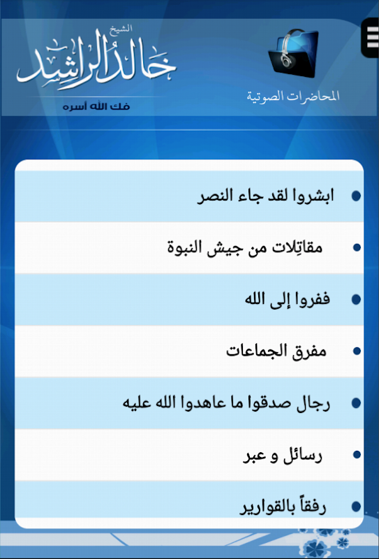 شیخ خالد الرشید کے لیے ایک ممتاز آڈیو ایپلی کیشن، جو مسلسل بولتے ہیں۔
