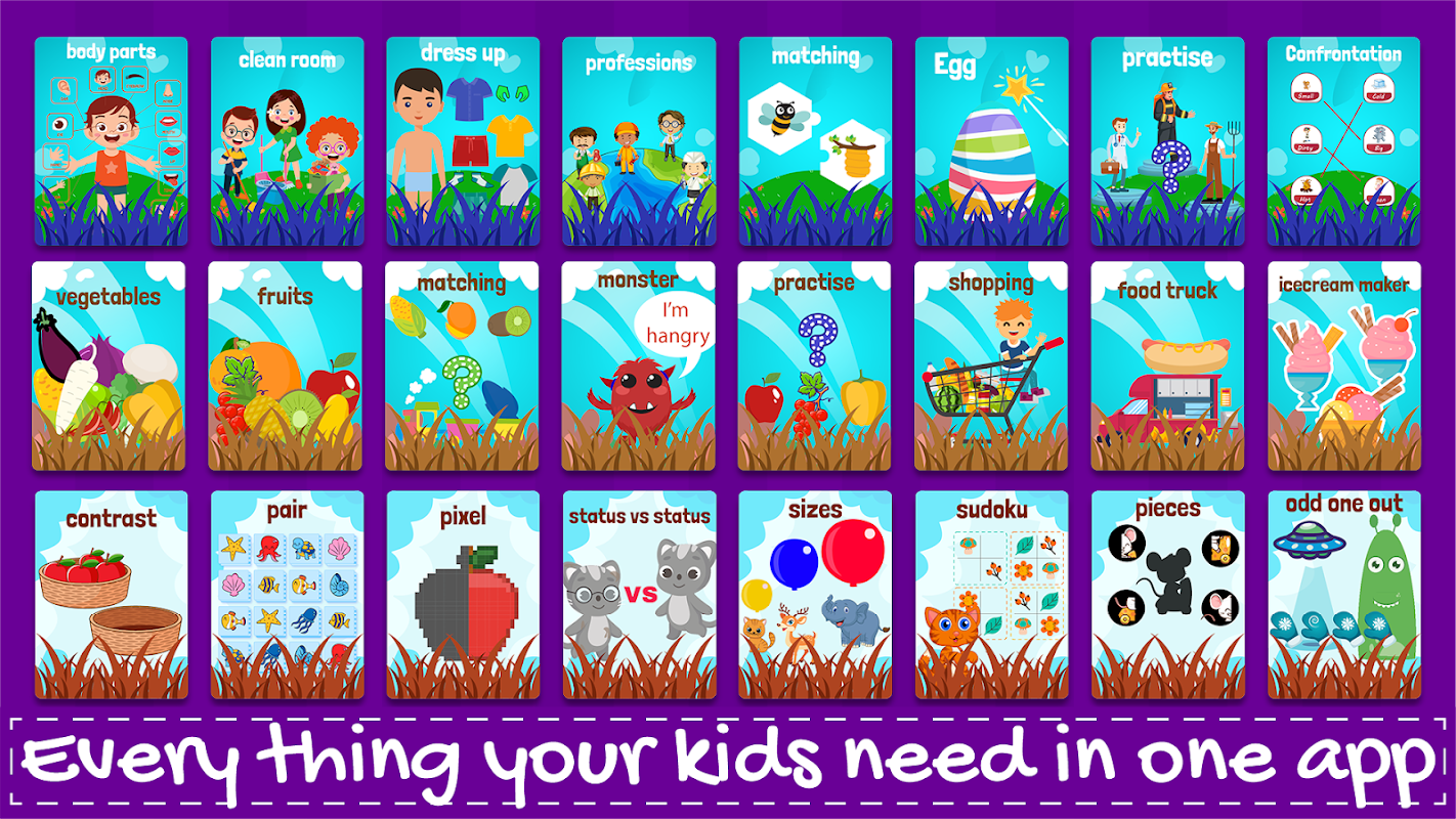 اس کے علاوہ آپ کے بچے جسمانی اعضاء، دن اور مہینے، موسیقی کے آلات، کمیونٹی کے مددگار اور بچوں کے لیے پری اسکول سیکھنے والے گیمز کا مزید سیٹ سیکھیں گے۔