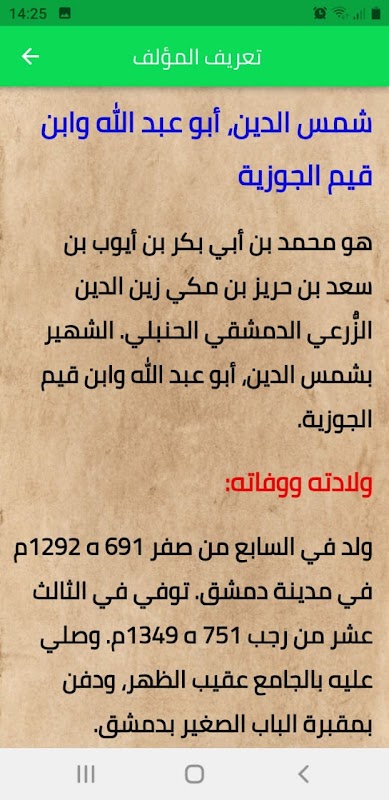 محمد ابن ابی بکر ابن ایوب ابن قیم الجوزیہ کا شمار شام کے علماء میں ہوتا ہے اور اس کی سب سے اہم کتاب 691 ہجری میں دمشق کے شہر علم و دانش میں پیدا ہوئی۔