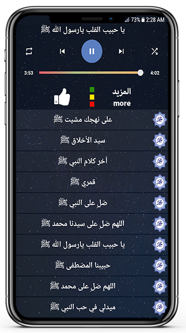 يضم هذا التطبيق أجمل الاناشيد الاسلامية 2022 بدون نت ونقدم لكم الاناشيد بصوت الشيخ المنشد مشاري العفاسي mishary alafsay وكذالك المنشد محمد يوسف والرائع محمد طارق ايضا مسعود كرتس وكذالك الشيخ القارئ احمد النفيس والقارئ اسلام صبحي والمنشد المتألق ماهر زين maher zain وايضا سامي يوسف sami yousf وايضا ابرز المطربين الذين غنو عن الرسول محمد مثل اغاني تامر حسني tamer hosny وكذالك حسين الجمي والرائع حماده هلال وقد قمنا باختيار ابرز اغاني اسلامية الجديدة والقديمه ونعمل على تحديثه بشكل مستمر