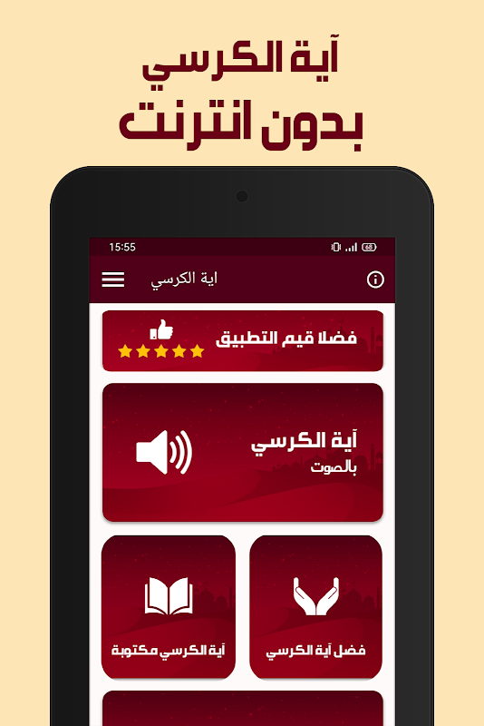 اگر آپ کرسی کی آیت کو بغیر نیٹ کے ووٹ ڈالنے کے لیے ڈاؤن لوڈ کرنا چاہتے ہیں، تو ہم آپ کو ہماری ایپلی کیشن ڈاؤن لوڈ کرنے کی دعوت دیتے ہیں، جو آپ کو کرسی کی آیت کو حفظ کرنے اور اس کی دعا کے علاوہ اس عظیم آیت کی فضیلت کو پڑھنے کے قابل بناتی ہے۔