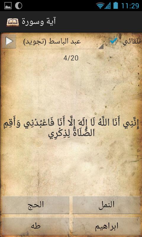 ** يقوم البرنامج بعرض آية وعلى المستحدم معرفة الاية التالية. يساعد على المراجعة والحفظ.