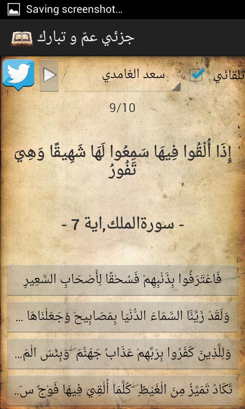 - امكانية مشاركة آية في اطارات متنوعة على التويتر والايميل والفسبوك