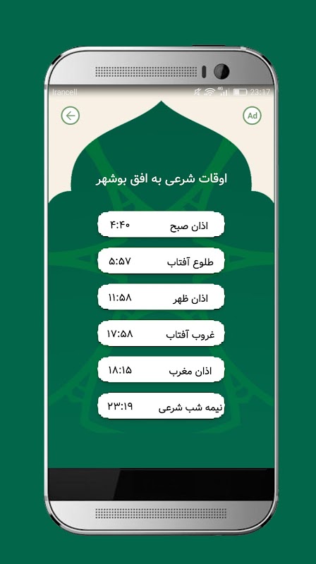 برا صبا کیلنڈر مفت اور وقت کی حد کے بغیر ہے اور اس میں دن کے مواقع سے متعلقہ اطلاعات موصول کرنے کی صلاحیت ہے۔ شہروں کے مذہبی اوقات کے لیے ہمیشہ فارسی صبا کی نئی مصنوعات ، اذان گو 1400 کے تازہ ترین ورژن کا انتظار کریں۔ ہوشیار مذہبی اوقات کو مت چھوڑیں۔