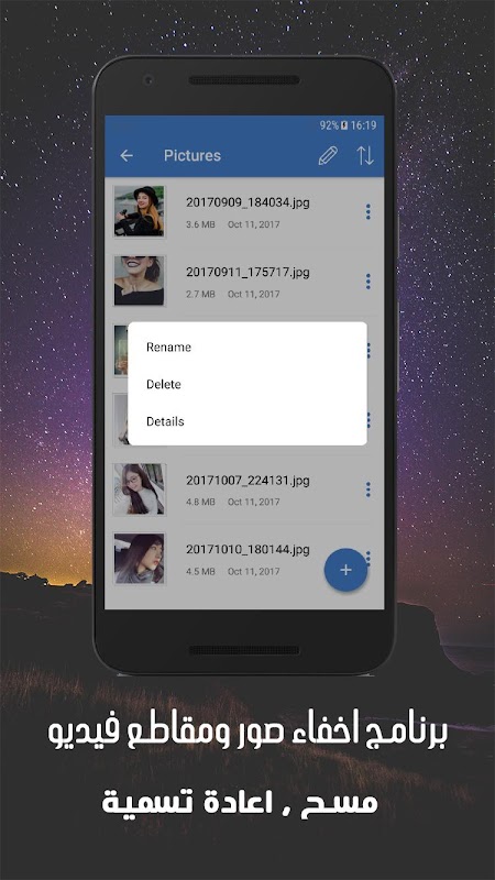 • إخفاء بسهولة أي صورة من معرض أو من التطبيق.
