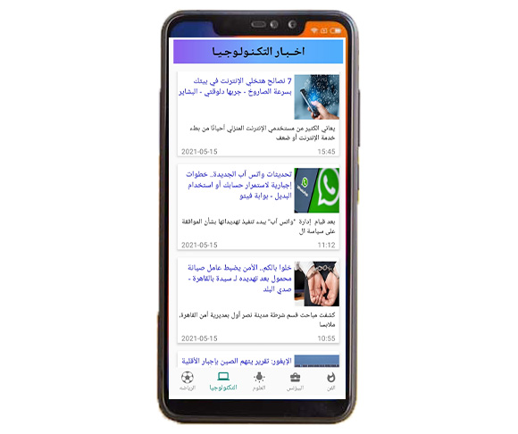 جہاں پروگرام کھیلوں کی خبروں - ٹکنالوجی کی خبروں - آرٹ کی خبروں - سائنس کی خبروں کے ساتھ ساتھ بزنس نیوز میں بھی تقسیم کیا گیا ہے ، جہاں ہر سیکشن آپ کو ایک سے زیادہ وسائل سے تمام ضروری خبروں کو جاننے کی اجازت دیتا ہے ، مثال کے طور پر اسپورٹس نیوز سیکشن کی خبریں دکھاتا ہے (یلاکورہ - ساتواں دن -