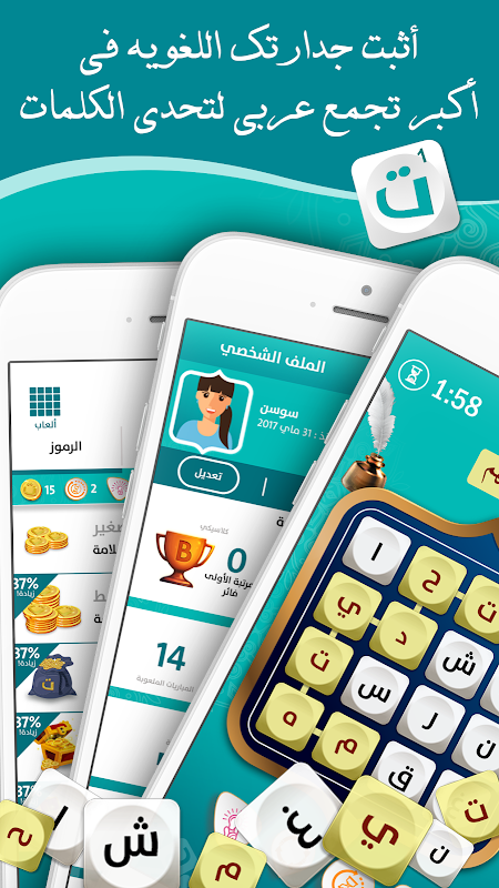 تحدي العرب: لعبة كلمات مسلية أونلاين مع الأصدقاء 1.7.0