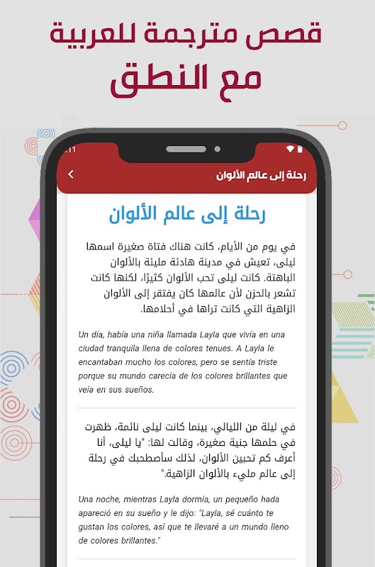 - کہانیاں اور جملے: اس میں ہسپانوی زبان میں ترجمہ شدہ کہانیوں کا ایک بہت بڑا مجموعہ اور عربی میں ترجمہ شدہ ہسپانوی زبان میں سب سے زیادہ استعمال ہونے والے فقرے شامل ہیں۔