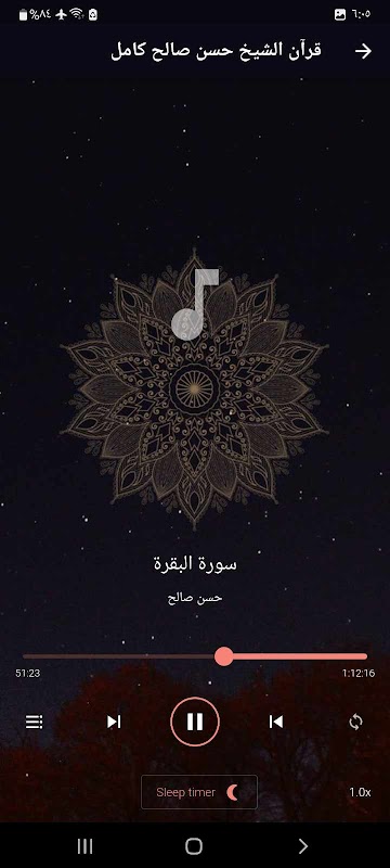 ایک پلے بیک ٹائمر جسے آپ شیخ حسن صالح کی عاجزانہ تلاوتوں سے لطف اندوز ہونے کے لیے ترتیب دے سکتے ہیں۔