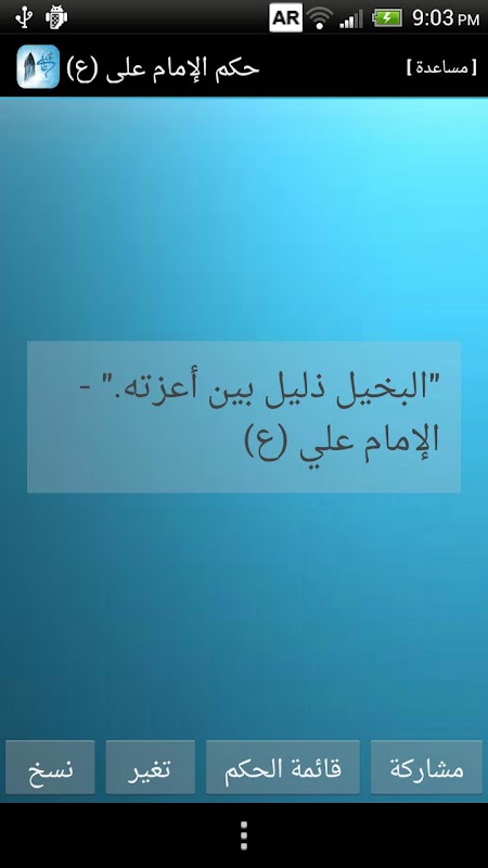 Thousand of quotes inspired by Imam Ali (A.S.), with many features like copying, sharing, and browse-ring.