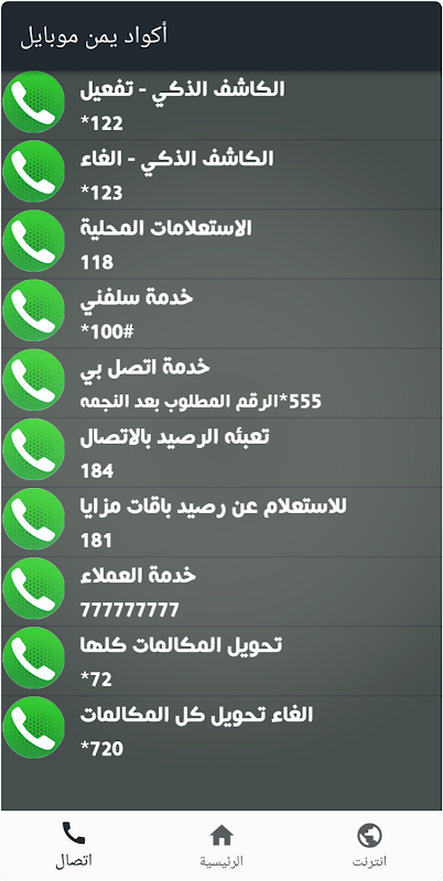 ڈیلییلی کوڈ ایپلی کیشن ایک سمارٹ ایپلی کیشن ہے جو اینڈرائڈ سسٹم کے ساتھ کام کرنے والے فونز اور سمارٹ آلات پر کام کرتی ہے جو آپ کو تمام یمنی مقامی نیٹ ورکس کے لئے انتہائی مشہور اور اہم کوڈز اور مختصر نمبر فراہم کرتی ہے (یمن موبائل - صبافون - ایم ٹی این - وائی)