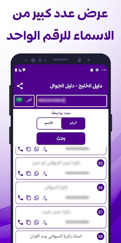 طاقتور نمبر بک ایپلی کیشن پرانی اور نئی خلیجی ممالک کی فون ڈائرکٹری اور تمام عرب اور خلیجی عرب ممالک کے نمبر اور نام تلاش کرنے کی صلاحیت کو الگ کرتی ہے۔