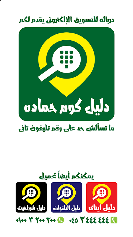 تطبيق أبليكشن دليل كوم حماده "بلدك في تليفونك" مساحته صغيرة به كل الأرقام