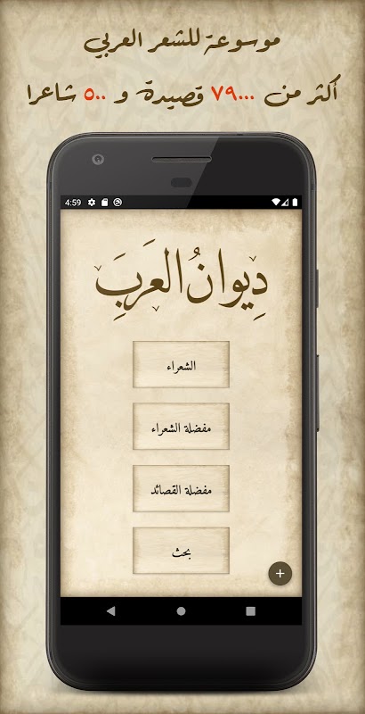 دیوان العرب - عربی شاعری کا انسائیکلوپیڈیا: اسمارٹ فونز اور گولیوں کے لئے ایک درخواست جس میں انٹرنیٹ کنکشن کی ضرورت نہیں ہے ، اور اس میں 500 سے زائد شعراء کے 79،000 سے زیادہ اشعار شامل ہیں ، گیارہ دوپہر کے دوران تقسیم کیا گیا ہے ، شاعروں اور نظموں میں تلاش کرنے کی اہلیت کے ساتھ ، اور سوشل میڈیا کے ذریعے اپنی پسندیدہ آیات کا اشتراک کریں۔ سماجی ، بہت سی دوسری خصوصیات کے علاوہ۔