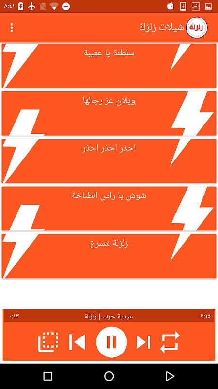 الشيلات المتوفرة في التطبيق :