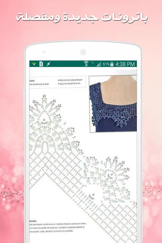 فقط بضغطة زر يمكنك تصفح صور أعمال مميزة للكروشيه وقف تصميم جذاب لكي تستمتعي باستعمال التطبيق بصفة يومية .