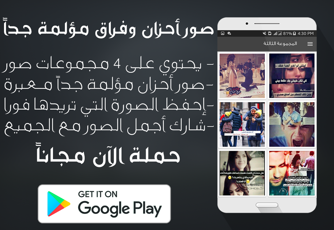 وبه مجوعة كبيرة جدا من الصور الحزينة مع الاشعار .