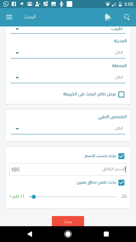- البحث عن طبيب حسب الاسم - الاختصاص – المدينة – المنطقة