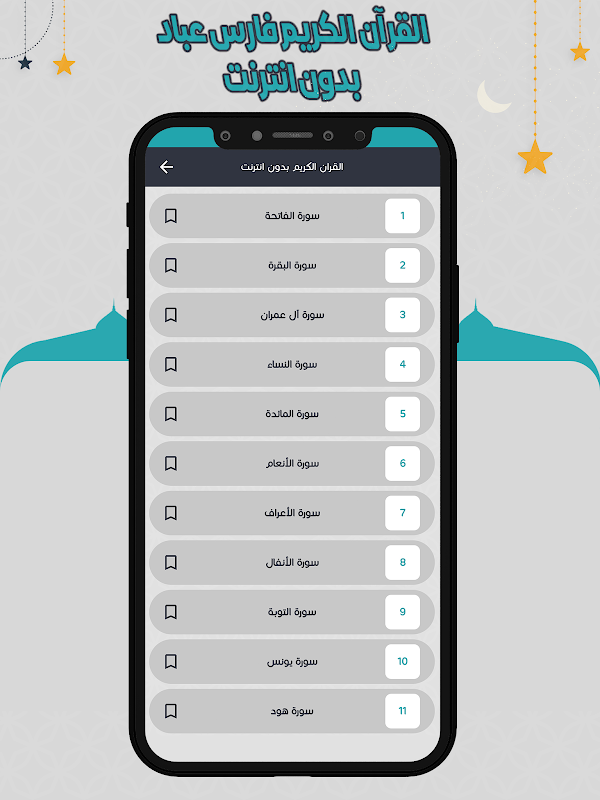 فریس عباد کی آواز کے ساتھ قرآن پاک کا اطلاق آپ کو ایک پروگرام کے ذریعہ اپنے موبائل فون یا گولی کے ذریعے قرآن مجید کی تمام سورتوں کو آسانی سے سننے کی اجازت دیتا ہے جس میں قرآن کریم کی تمام سورتوں پر مشتمل قرآن پاک کی تلاوت کی درخواست مفت ہے اور فون پر اسٹور پر بھی دستیاب ہے انڈروئد. قرآن پاک کی درخواست آسانی سے فریس آباد کی آواز کے ساتھ ڈاؤن لوڈ کی جاسکتی ہے ، تاکہ جہاں چاہیں شیخ فریس آباد کی آواز کے ساتھ قرآن کریم کی تلاوت سے لطف اٹھائیں۔