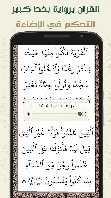 قرآن کو بڑے فونٹ میں پڑھتے ہوئے اسکرین کی چمک کو کنٹرول کریں، اور خود بخود قرآن کی چمک کو آٹھ رکھیں۔