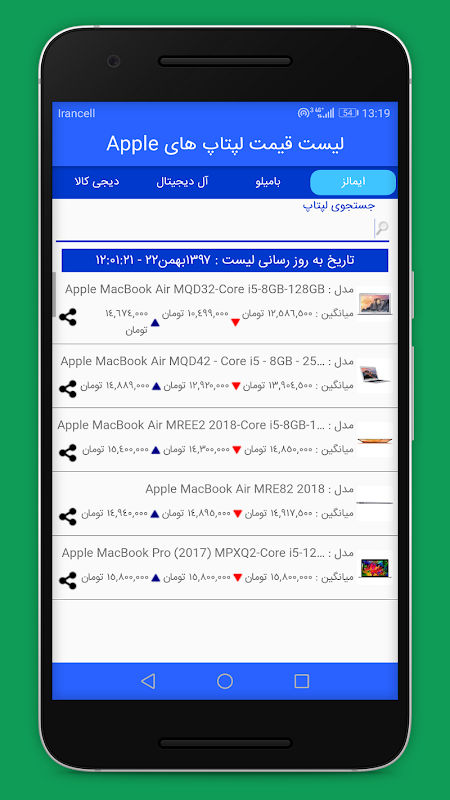 پیشنهاد میکنیم این برنامه کامل رو که قیمت لحظه ای لپ تاپ ها رو میده از دست ندید.