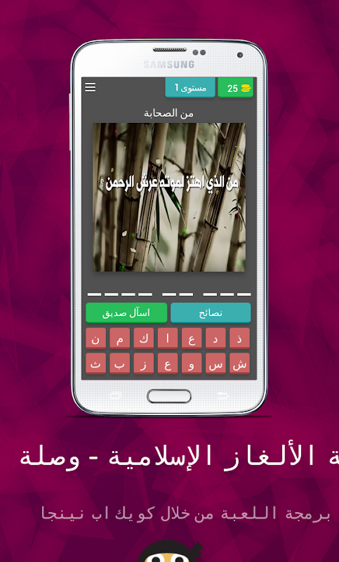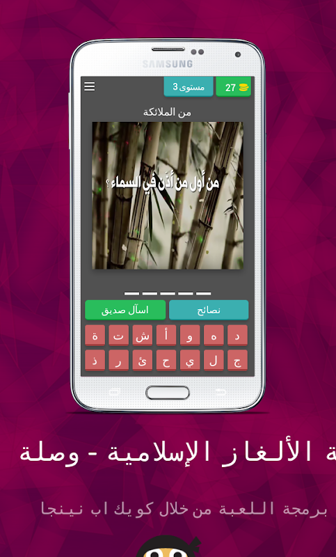 لعبه شيقة مليئة بالألغاز والأسئلة القيمة في القران , السنة النبوية , الثقافة الإسلامية والتاريخ وذلك لكى تنافس مع أصدقائك وتختبر وتنمى معلوماتك.