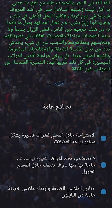 - الاطلاع على أهم توجيهات المرجعية الدينيا العليا الخاصة بزيارة الأربعين، بالاضافة إلى بعض النصائح الطبية والمجتمعية.