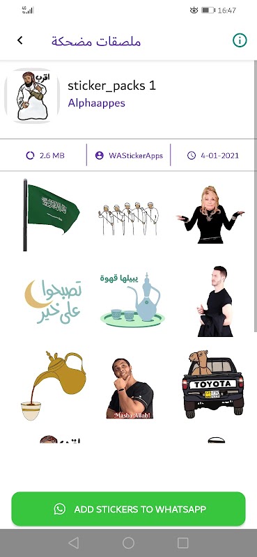 - ملصقات واتس اب مضحكه وتحتوي العديد من الوجوه والعبارات الشهيرة في العالم العربي والمضحكة.
