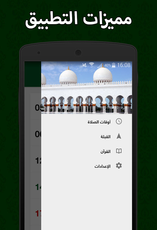 - التنبيه لأوقات الصلاة سواء باختيار أذان كامل أو فقط باختيار إشعار ينبهك بوقت الصلاة