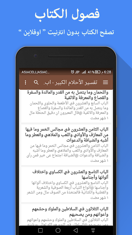 - يتم تحديث محتويات الكتاب بعد تحميل التطبيق مباشرة ثم لا يحتاج الى اتصال انترنيت لمتابعة القراءة.