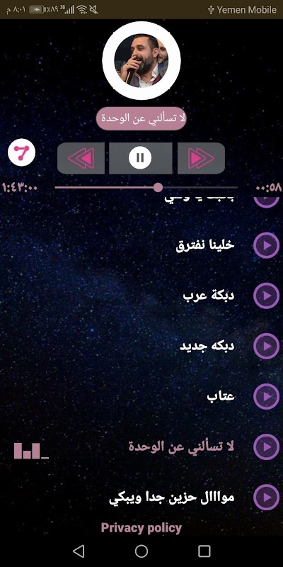 وفي الاخير نشكرك على اختيارك تطبيق نعيم الشيخ من اجل الاستماع الى الاغاني الموجودة.