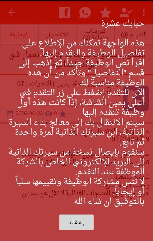 انشر التطبيق لأصدقائك وأهلك المهتمين عبر الواتسأب والفيسبوك أو الإيميل...