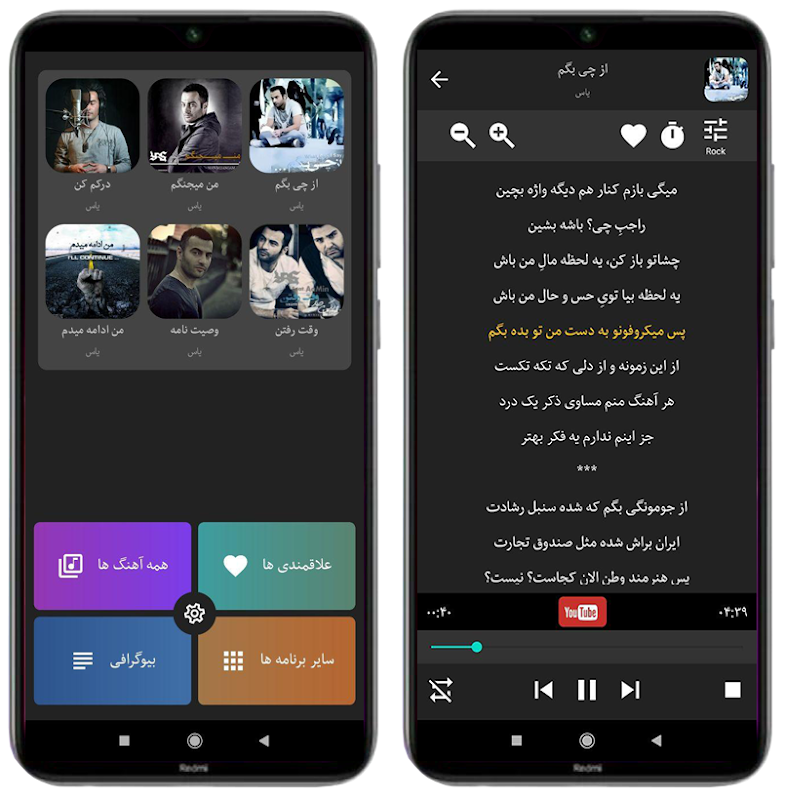 * قابلیت جستجوی آهنگ یا متن آهنگ