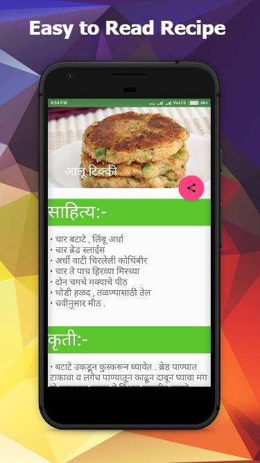 This app gives you each recipes in Marathi only. It is a very useful App for cooking lovers as well as new cooking Learner also. This app will use in your kitchen at any time.