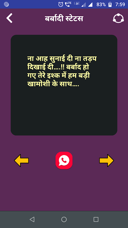 This is one of the best collection of latest Barbadi shayari app which is totally free and no internet connection required . Lover is one of the important part of human life for share there feelings to some we must need a proper text which is attached by our emotion for that this is best and suitable app for you just use and share ultimate feelings .