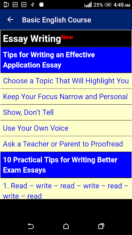 The app has been divided into four convenient units of Grammar, Pronunciation, Conversation and Vocabulary. Each chapter covers one main area of learning English - explained thoroughly with examples and special attention being given to the basic skills.