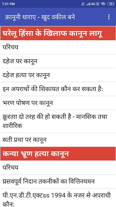 یہ ہندی زبان میں کونی دھارا (انڈین پینل کوڈ 1860) ایپ ہے۔