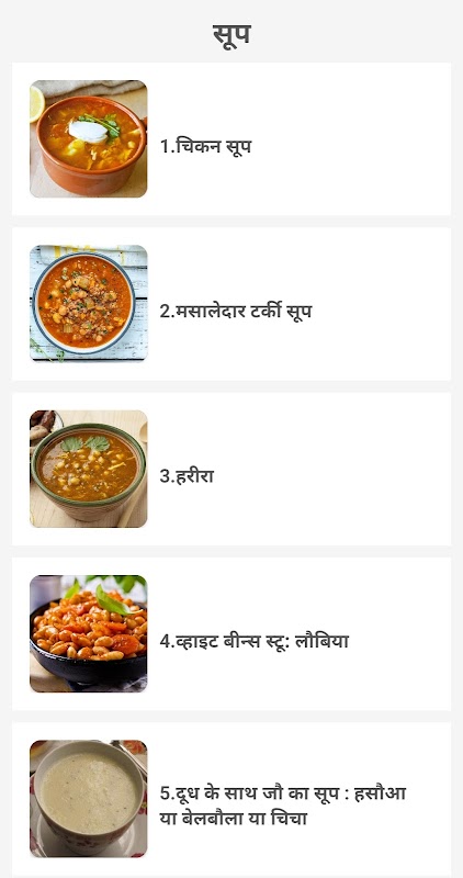 اس ایپ میں آپ کو مختلف اقسام کی ترکیبوں کی ایک جامع فہرست ملے گی، جیسے کہ Tagine، Kasba، Couscous اور بہت کچھ۔ ان ترکیبوں کی مجموعی معلومات، اجزاء اور طریقے آپ کو ہندی میں فراہم کیے جائیں گے۔