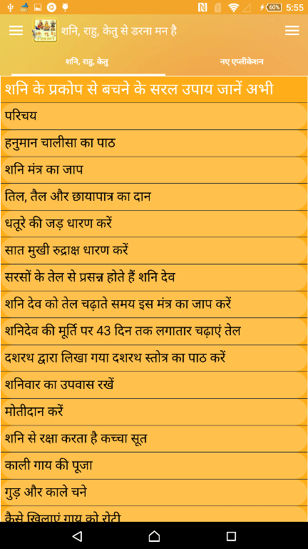 This app gives the Remedies and Upays for Sade Sati, Ashtama Shani, Shani dhaiyya, Kantaka Shani, Shani Mahadasha.