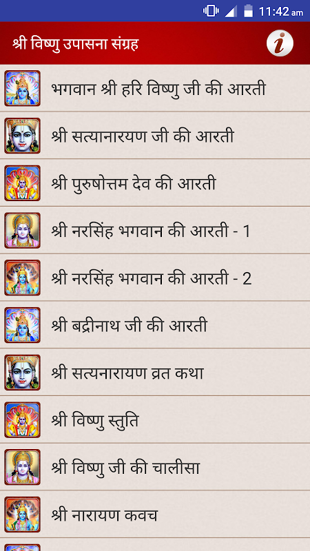 یہ ایک مفت اینڈروئیڈ ایپ ہے جس میں آرتی چالیسہ منتر پوجا اور لارڈ شری وشنو کی وراٹ کتھا کا مکمل مجموعہ ہے۔ ہندو برادری کے ذریعہ وشنو ایک سب سے عبادت گزار مالک ہیں اور کہا جاتا ہے کہ وہ کائنات کا محافظ ہے۔ ہر ہندو کی رسم کا آغاز لارڈ وشنو کی پوجا سے ہوتا ہے۔