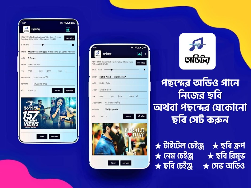 অডিও গানে ছবি বসানো সফটওয়্যার যারা খুজছিলেন তাদের জন্য, এবং যারা নিজের পছন্দের অডিও গানে নিজের ছবি অথবা যেকোনো পছন্দের ছবি সেট করতে চাচ্ছেন, সবার জন্য আমাদের এপটি। যার মাধ্যমে আপনারা খুব সহজেই যেকোনো অডিও গানের ছবি চেইঞ্জ করতে পারবেন, টাইটেল, নাম চেইঞ্জ করতে পারবেন, ছবি সেট করার সময় ক্রপ করে রিসাইজ করে নিতে পারবেন। এবং সেই অডিও নতুন করে সেইভ করে নিতে পারবেন।